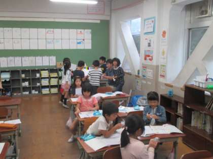 算数の学習です。今日から,5のだんを覚えます。家でも練習して,ぜひ九九名人になってほしいと思います。