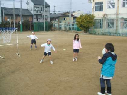 体育の学しゅうでは,ボールけりあそびを学しゅうしています。みんなでルールをきめて楽しくかつどうしています。みんなつぎは,どのチームとしあいをするのかわくわくするとかんそうを発表していました。