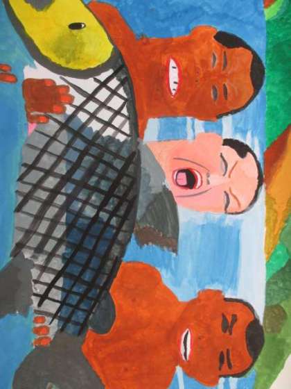 図工で取り組んでいた,お話の絵ですが,完成してきています。今回の絵は,人の表情が素晴らしく,子どもたちもとっても納得のいく作品になっています。