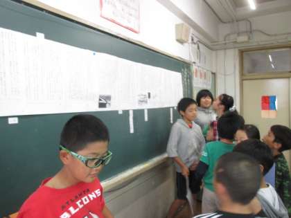 今日は,「百年後のふるさとを守る」を読んで,気になったところを全文シートを使って友だちと交流しました。子どもたちは,行動や言葉に着目して気になったところを見つけ出していました。