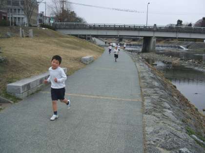 きょうの3・4じかん目の体いくは1年生と2年生とえのきで、マラソン大かいにむけてかも川へはしりにいきました。