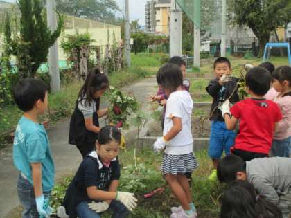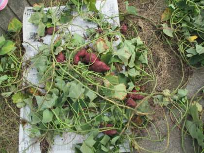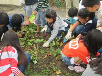 生活科の学習です。2年生が育ててきたさつまいもの収穫です。大きいものから,形の丸いものなど,さまざまなさつまいもがとれました。食べるのが楽しみです。