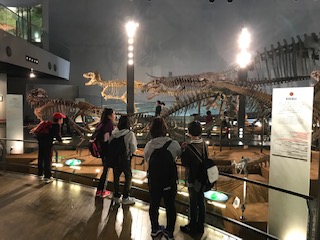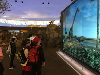 とてもたくさんの化石や恐竜の骨が集められた恐竜博物館,興味深く見学していました。恐竜の時代にタイムスリップした子どもたちです。