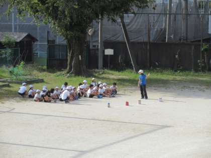 50mハードルの練習が始まりました。今回は5歩で次のハードルを飛び越せる,ちょうど良いハードル幅を探しました。