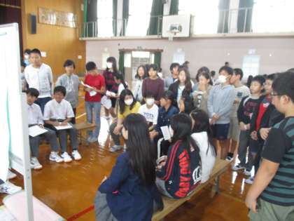 中学校にポスターセッションを聞きに行きました。チャレンジ体験での学びを,一人一人が伝えてくれました。2年後の自分たちの姿を想像できたでしょうか。今日見たことを,普段の発表のときに生かしてくださいね。