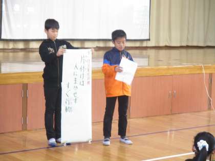 後期2回目の「にこにこ集会」がありました。児童会の子たちは司会進行が板についてきました。学年のいいところを見つけて伝えるなど,自分たちで工夫して進める姿も見られます。次も楽しみです。