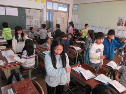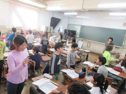 4拍子,2拍子,3拍子と学習してきた子ども達。4年生では6拍子の曲が登場します。指揮者になったつもりで,曲に合わせて手を振ってみました。