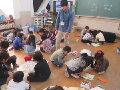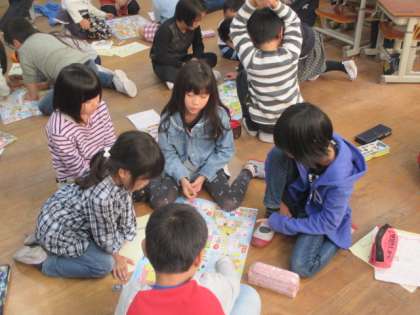 延期になった遠足。残念です。前日は,遠足でがんばることを先生から教えてもらいました。最後は,電車でのマナーが勉強できるすごろくを1年生と一緒にしました。