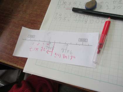 概数の学習が始まり,今日は四捨五入のしかたを学びました。