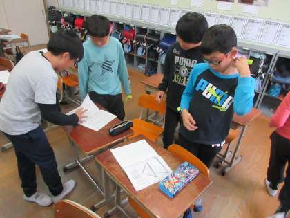 友だちのノートを見ながら,自分の学習に生かせるところを探しています。