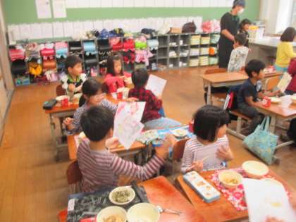 1年生からのサプライズ。お手紙を持ってきてくれました。さつまいものお礼です。一生懸命書いてくれた手紙を大事そうに見ていました。