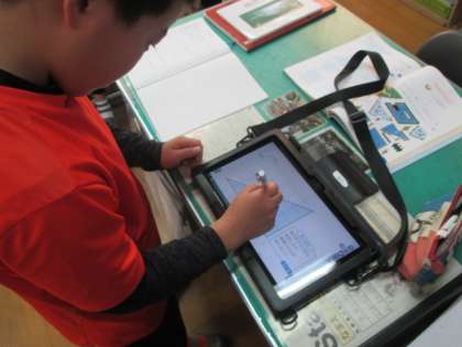 今日は,面積の学習をしました。4年生で学習したことを使って,三角形の面積を求めました。