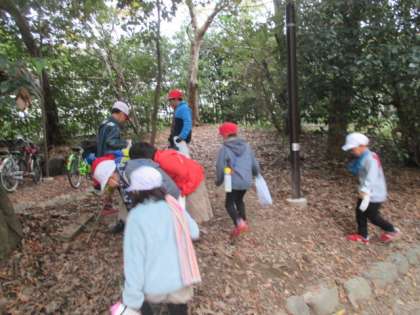 生活科の学習です。下鴨神社に行きました。そこで,紅葉した葉やどんぐりを拾いました。どんぐりは,たくさんあり,子どもたちは大喜びでした。