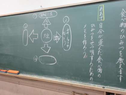 国語の授業で学習した「すがたをかえる大豆」の説明文の書き方を活用して,自分達で調べた食べ物の変化をまとめていきます。食べ物がどのような姿に変わるのか,子ども達は楽しみながら調べています。