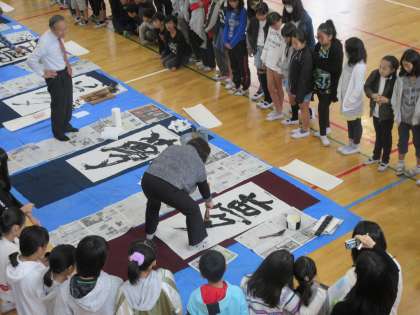 プロの書道家の方に来ていただき,パフォーマンスと講演をしていただきました。迫力のある書体に実際に触れることができて,子ども達はとても嬉しそうにしていました。
