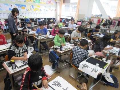 書道家の方に教えてもらった姿勢や筆づかいを思い出しながら書きました。