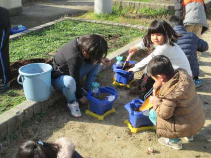 生活科の学習です。チューリップを植えました。まずは,球根の観察です。アサガオやヒマワリは種でしたが,チューリップは球根です。大きさにびっくりです。来年の4月には,きれいな花が咲いているといいですね。