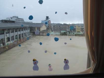 昨日の放課後に作ってくれた雪だるまです。今日の雪を予言しているかのようでした。