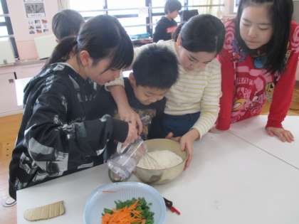 今月は韓国・朝鮮について知ろうをテーマにチヂミ作りをしました。コリアみんぞく教室の先生から作り方だけでなく「いただきます」や「ごちそうさま」の言い方をならいました。