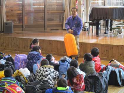 所員の方からのお話を真剣に聞く姿が素敵でした。代表の子どもによるあいさつ、校歌を歌いながらの校旗の旗揚げなど、最後までしっかりとした態度で臨めました。