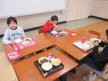 今日の給食は,ごはん・牛乳・プルコギ・中華コーンスープでした。プルコギには,にらが入っていました。にらは,カロテンやビタミンCを含み,風邪を予防する働きがあります。中華コーンスープは,卵がトロトロしていて大人気でした。おいしくいただけましたね♪