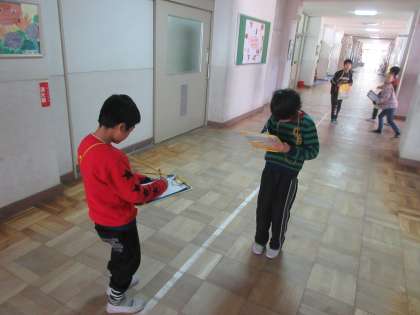 学校の中になる危ないと思う場所を調べました。滑りやすい所,物が落ちてきそうな所など,よくよく探してみると危なく感じる所が見つかりました。