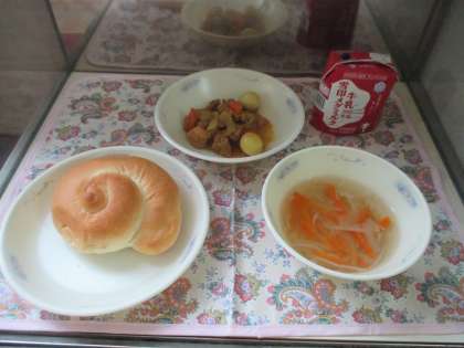 2月19日(火)の給食は,バターうずまきパン・牛乳・鶏肉とうずら卵のスパイシーいため・ミーフンスープでした。鶏肉とうずら卵のスパイシーいためは,今月の新献立でした。カレー風味でスパイシーな味わいでした。パンにもよく合い,しっかり食べることができました。