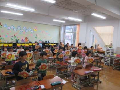 国語科の教科書を開いて,「あさ」の音読をしました。みんなで声を合わせて上手に読むことができました。次は,どんな学習をするのか楽しみでいっぱいです。
