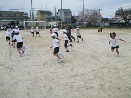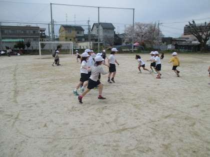 2年生になって初めての体育科の学習でした。50メートル走のタイムを測る前にみんなで手つなぎ鬼をしました。必死に逃げる姿がとってもかわいらしかったです。次回の体育科の学習も楽しみです。