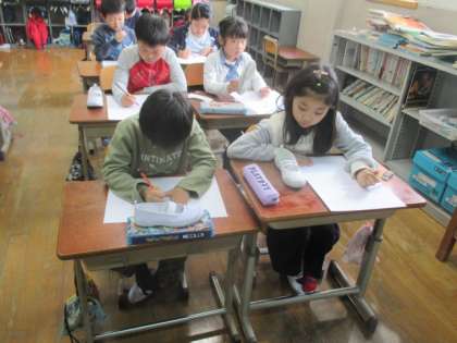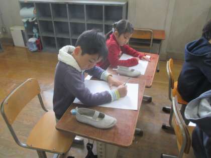 3年生になって初めてデッサンをしました。45分間集中して描き続ける力を付ける目的があります。今回は上靴を書きました。とっても難しかったようで,とっても悩んでいましたが,時間がたつにつれて鉛筆がスムーズに動いていました。