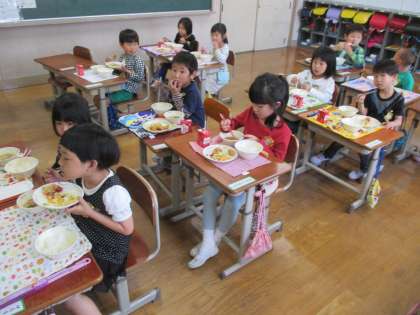 今日の給食は,ごはん・牛乳・チキンカツ・ソテー・みそ汁でした。チキンカツは,給食室で調理員さんが衣をつけてあげています。ソースも手作りです。サクサクとした衣の食感を楽しむことができました。