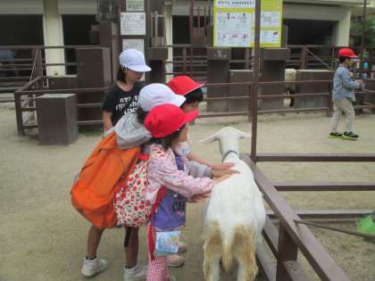 ふれあいのコーナーでは少しドキドキしながらも,かわいい動物たちと仲良くなれました。2年生と一緒で安心なようでした。
