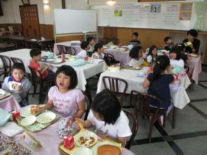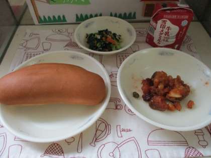 今日の給食は,ミルクコッペパン・牛乳・たらと豆のアングレス・小松菜のソテーでした。アングレスとは,イギリス風という意味があります。揚げた豆やたらをケチャップやウスターソース・さとうで作ったタレにからめています。豆の食感が好きな子も多かったです。今日は2年生がランチルームで給食を食べました。苦手なものがある人も頑張って食べられました。