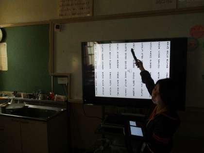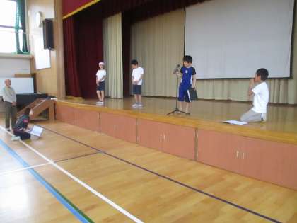 いよいよ明日です朗読発表会!体育館で舞台に上がって練習しています。全校朗読も頑張っています。