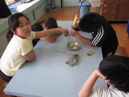 ものを燃やす前と後では,気体にどのような変化があるのか,石灰水と気体検知管を使って調べました。初めての実験道具でしたが,これから何度か使うので,しっかり使い方に慣れてほしいと思います。