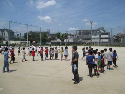 中間休みに大縄跳びをしています。5年生は得意な子が固まって,ものすごい速さでとんでいきます。大記録を目指してがんばっています。