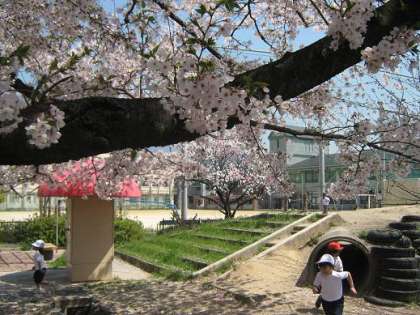 例年より遅く開花した桜の花びらが風に乗って運ばれています。新年度が始まって一週間がたち,6日に入学した1年生も少しずつ学校の生活に慣れてきたようです。