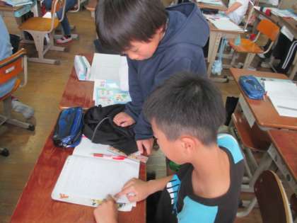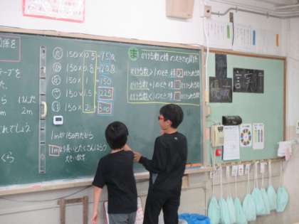 かける数が小数の時,かけられる数と積の関係を調べました。何となくわかってはいるものの,ことばにして説明するのは難しい子も多いようでした。何度も友だちに聞いて理解しようとしていました。
