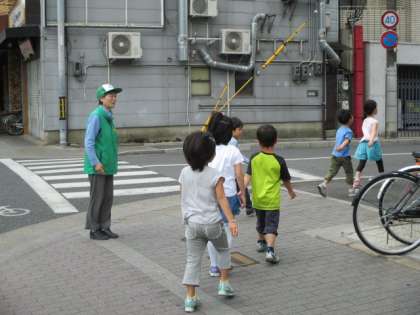 今日は,下鴨警察署の交通安全課の方々,地域の交通安全会の皆様,養正小PTAの保護者の皆様にお世話になり,交通安全教室をおこないました。