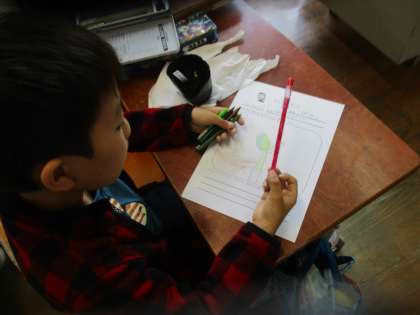 芽が出て,大喜びの子どもたち。しっかり観察し,カードに記録しました。これからの生長が楽しみです。