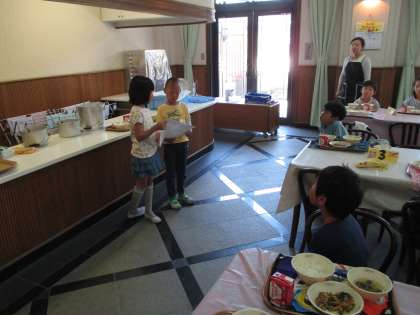 食育のあとは,お楽しみのランチルームでの給食です。いつも以上に,牛乳をおいしく楽しく飲む姿がありました。