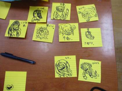 えのき学級には様々なアイデアや絵であふれています。今日も妖怪の絵やオリジナルカードゲームができていました。