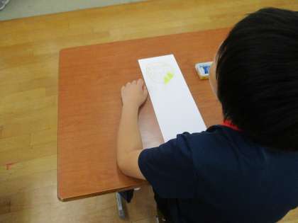 図工の時間にコンテとパスを用いて1輪のひまわりを描きました。漠然としたものではなく写真を細かく観察し,細部までこだわって描きました。