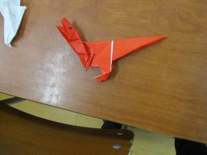 最近図画工作の時間に折り紙でいろいろなものを制作する学習に取り組んでいます。折り紙の本を見ながら手順を確認し,丁寧に折っています。