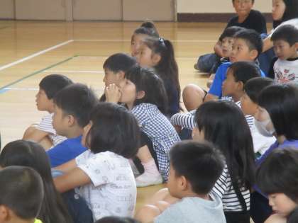 6月のにこにこ集会がありました。今月のにこにこ集会では,全校児童が教員よりえのき学級についての話を聞き,その後各学級においてえのき学級についての動画を視聴し学習してくれました。えのき学級では,これからも各学年と様々な交流を図っていきたいと思います。