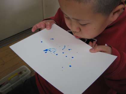 と紙の上の絵の具をふいていろいろな模様ができました。