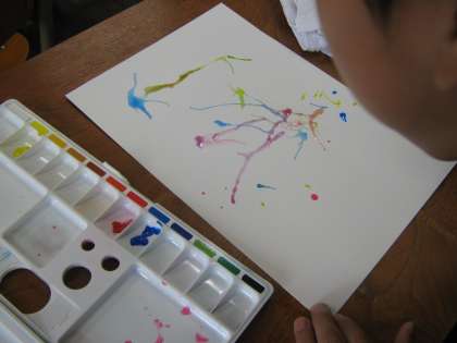 絵の具を使って,ふき流しや,合わせ絵をしました。