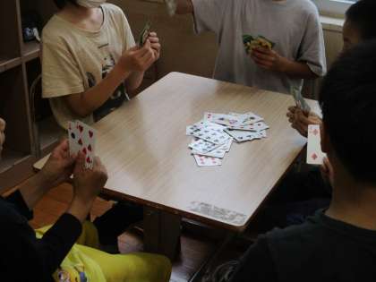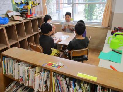 今日は梅雨らしい雨で1日外に出て遊ぶことができませんでした。しかし,えのき学級では,雨でも室内でできる遊びをみんなで楽しんでいます。