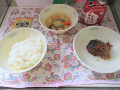 今日の給食は,ごはん・牛乳・さばのかわり煮・鶏肉と野菜の煮つけ・黒大豆でした。さばの骨を箸できれいに取って食べられたでしょうか?ごはんと合うおかずで,しっかり食べていました。ロング昼休みに元気に遊ぶことができました。