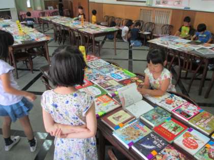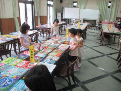 今日は選書会がありました。ランチルームにずらっと並んだたくさんの本に,子どもたちはとても喜んでいました。